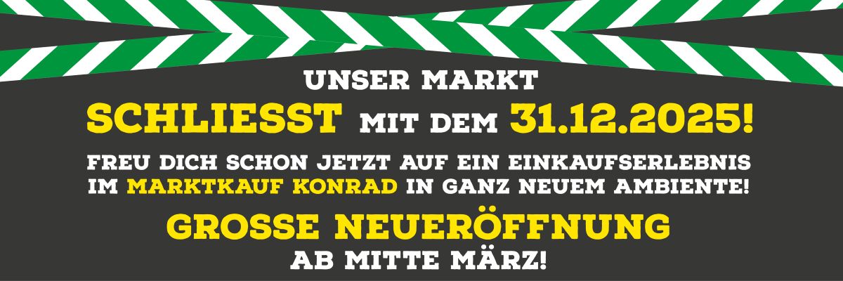 Wir schließen mit dem 31.12.2025Wir schließen unseren Markt mit dem 31.12.2025. Freu Dich schon jetzt auf…» Mehr erfahren